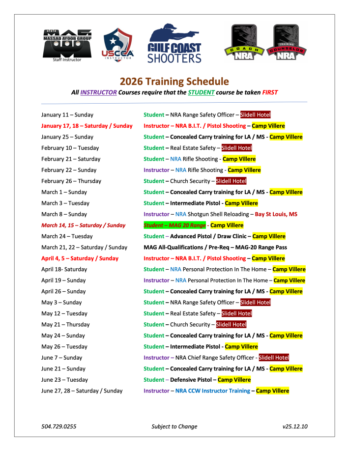 Gulf Coast Shooters is excited to offer you the very best in firearms training and instruction courses. From concealed carry permit training to certified NRA training for pistols, rifles, and shotguns, reloading and Range Safety. Our firearms instructors are excited to help you learn how to safely handle your firearms.
